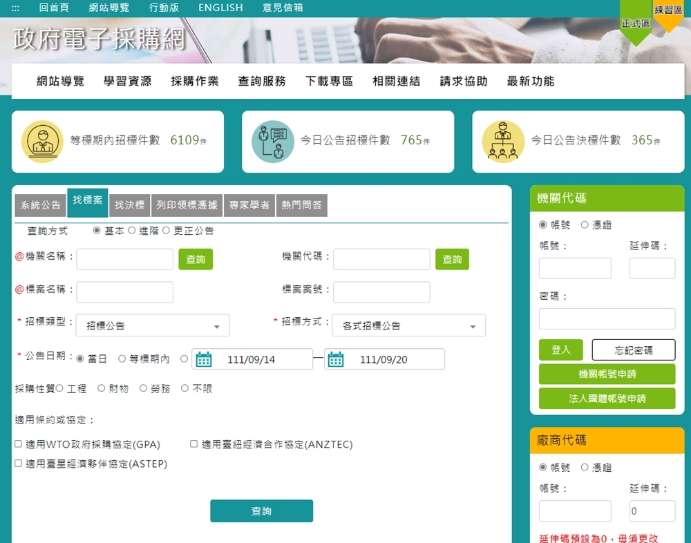 ll 操作流程可至網站操作練習,https://webtest.pcc.gov.tw/pis/ ll